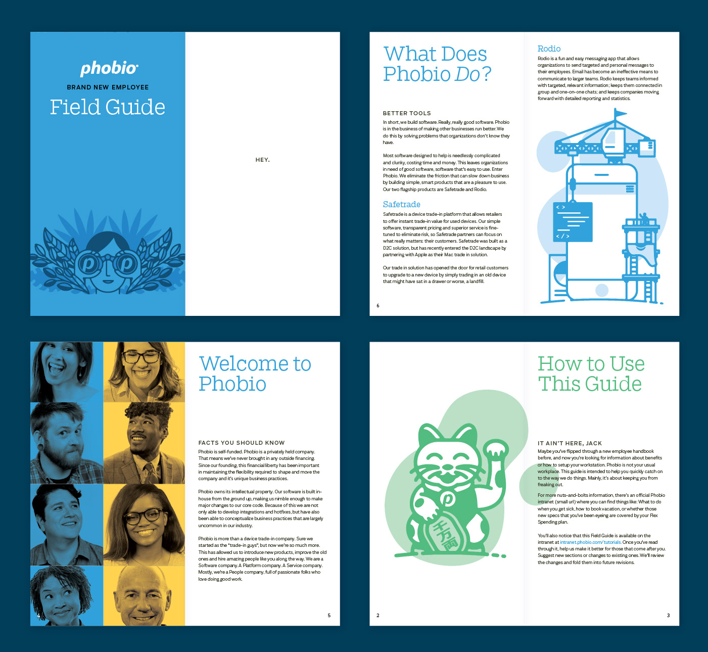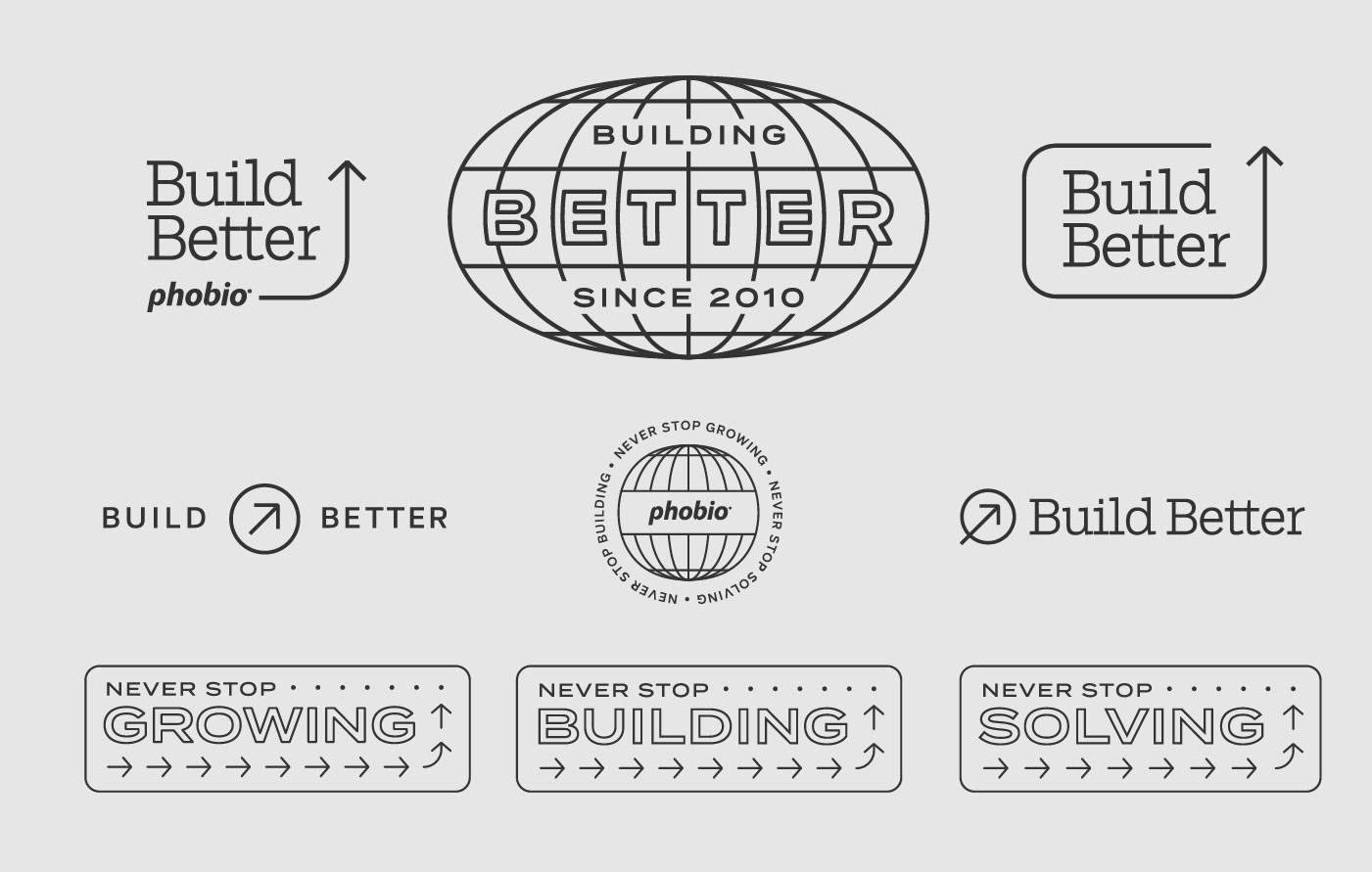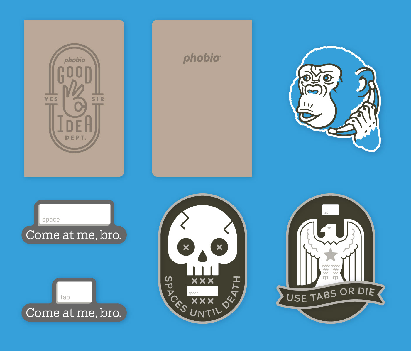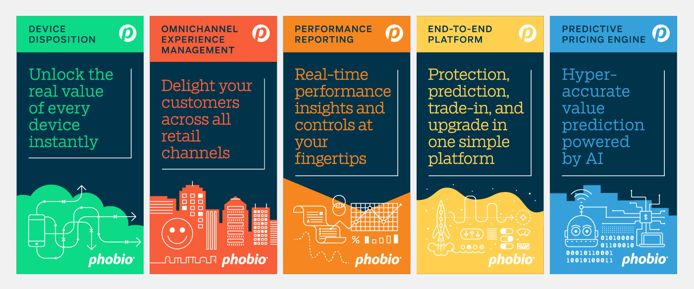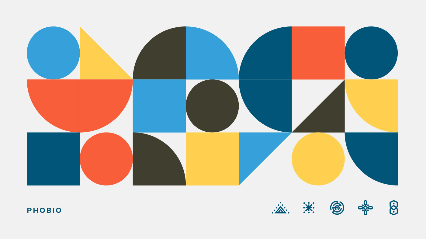 A collection of various brand materials for Phobio, a mobile software startup, created over the course of several years.
